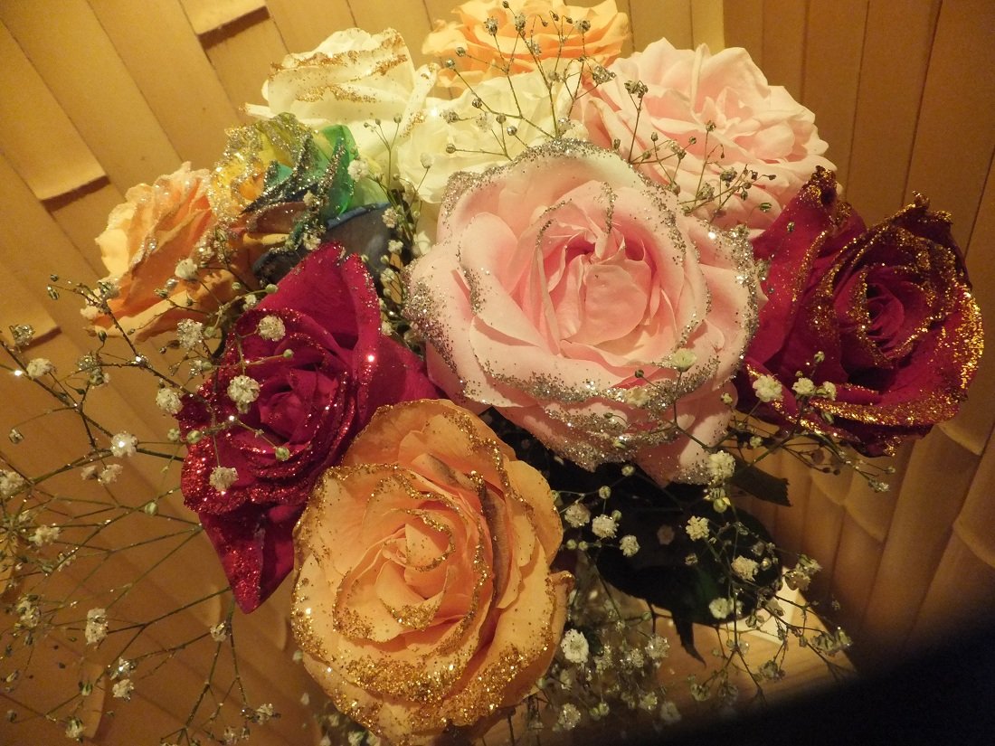 お客様からは、キラッキラの薔薇をいただきました。キレ~❤