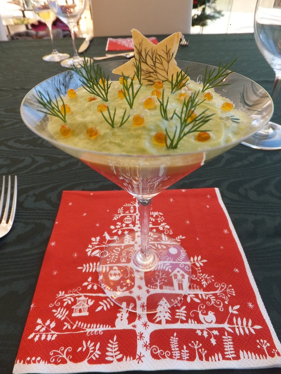 ●サーモンとスズキのタルタル アヴォカドムースのカクテル仕立て