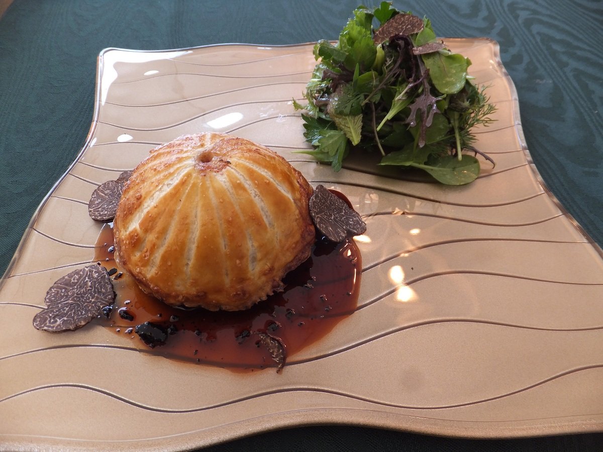 ●ポルチーニ茸とフォアグラ入り 鴨ミンチのパイ包み トリュフ入りソース