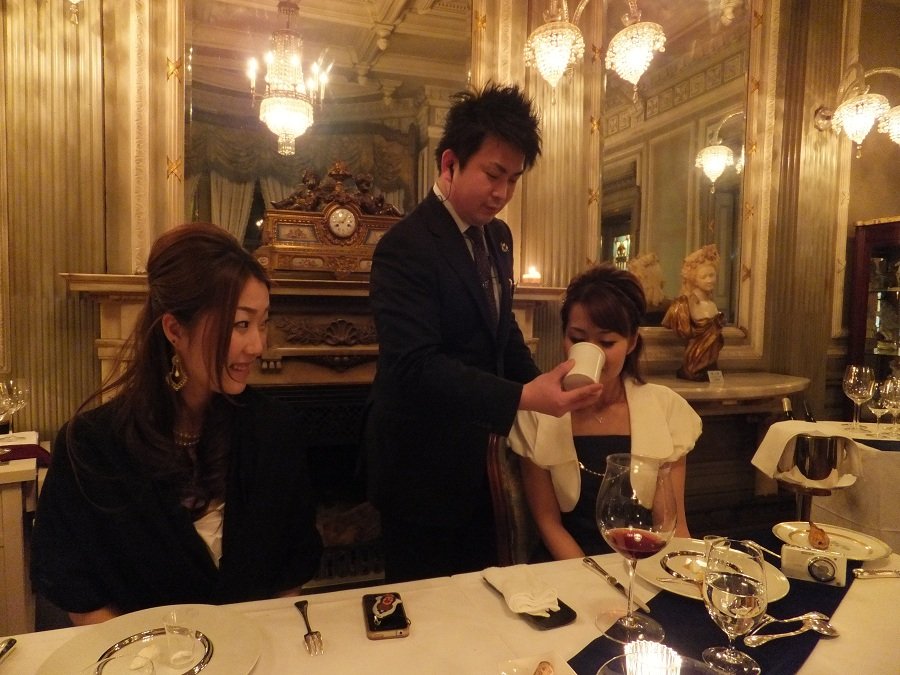 バカラのグラスにシャンパンを注いでもらって、スペシャルディナーの始まりです(*^_^*)