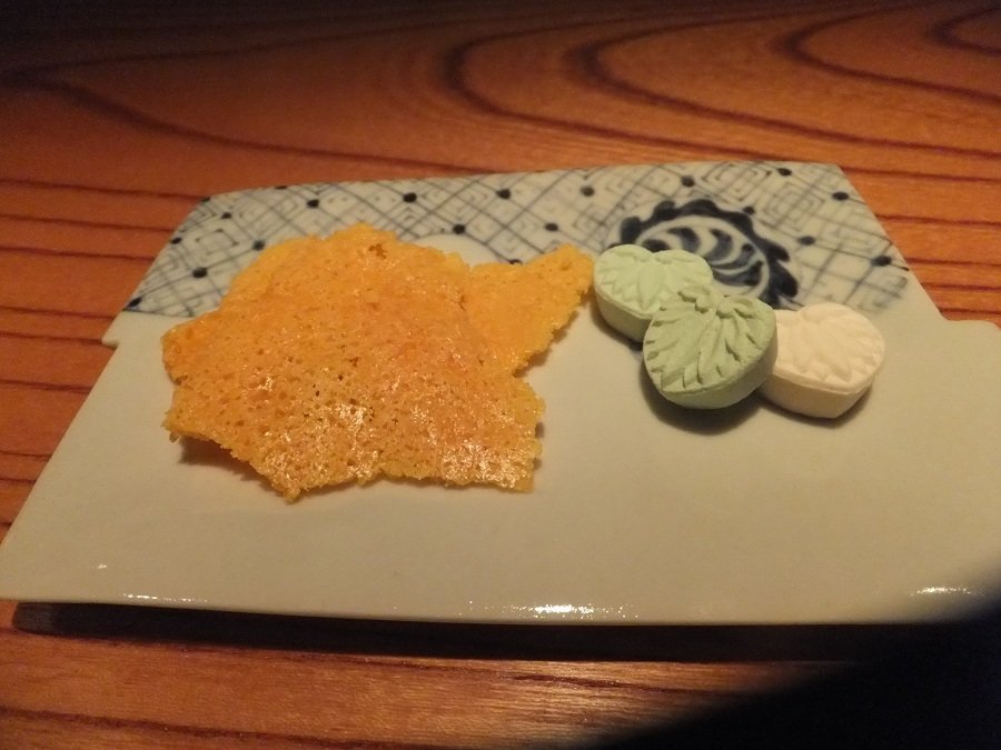 自家製ミモレットせんべいと、上品なお干菓子でシャンパンが進みます❤