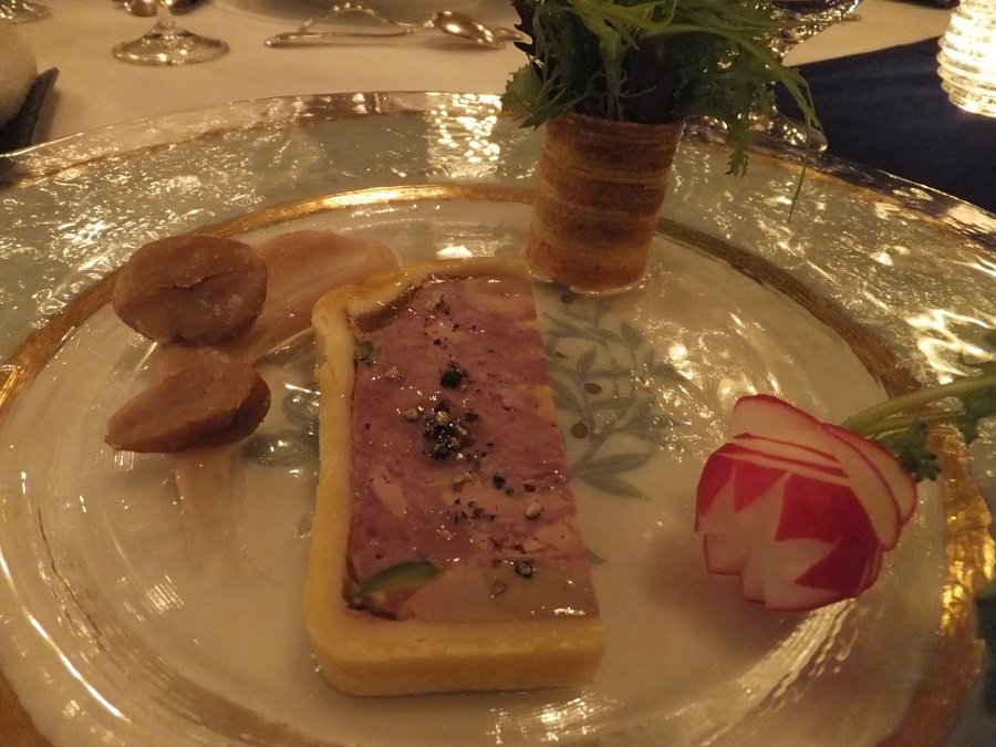 冷前菜はフォアグラとピスタチオのテリーヌ