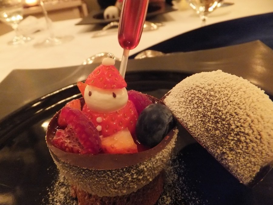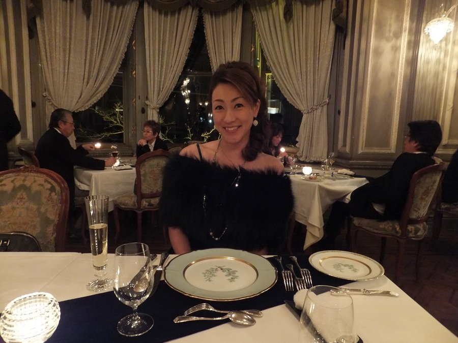 バカラのグラスにシャンパンを注いでもらって、スペシャルディナーの始まりです(*^_^*)