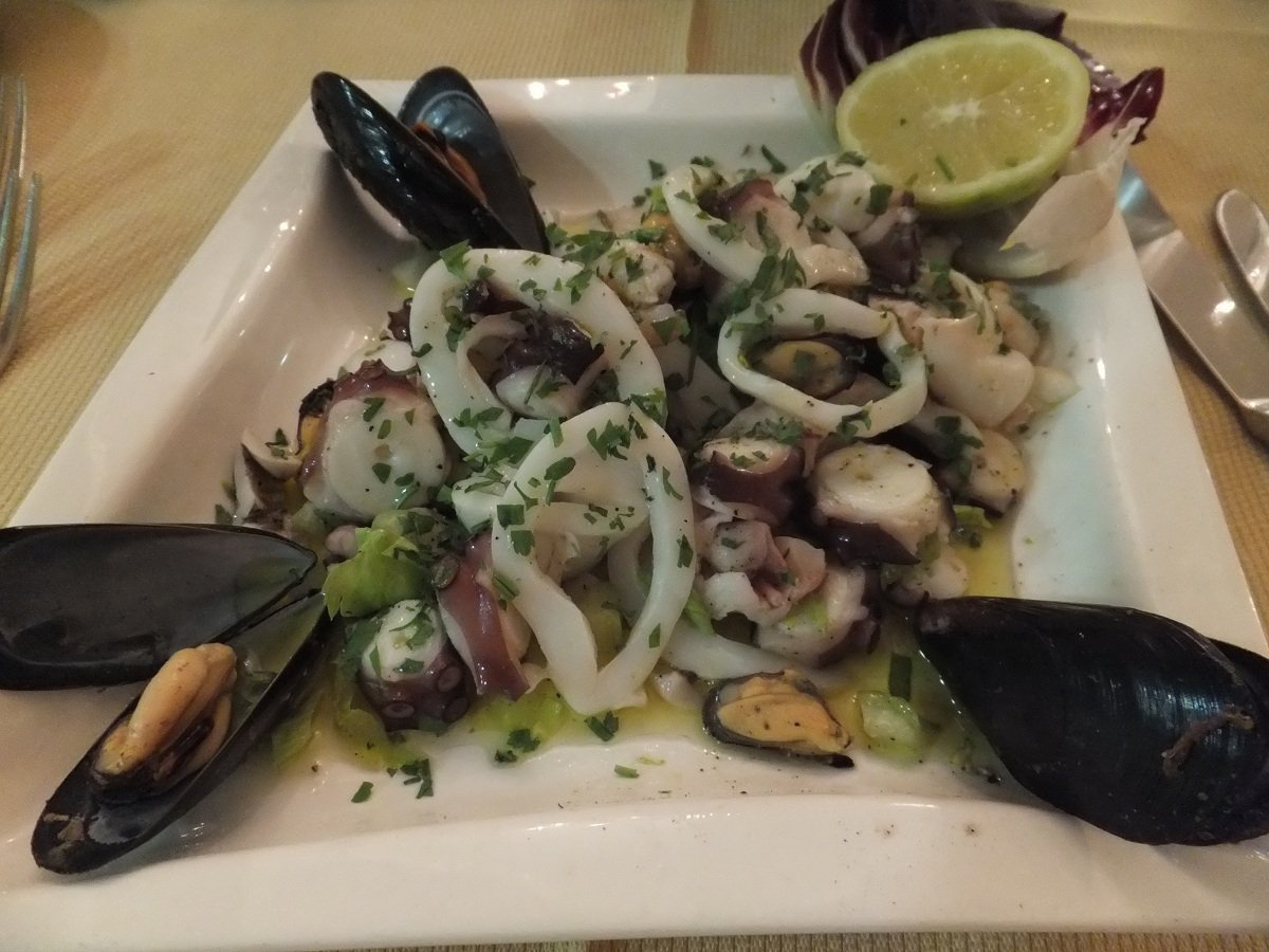 シチリアの Antipast( 前菜 )と言えば、やっぱ Insalata di mare(インサラータ・ディ・マーレ)を食べないとね(●^o^●)