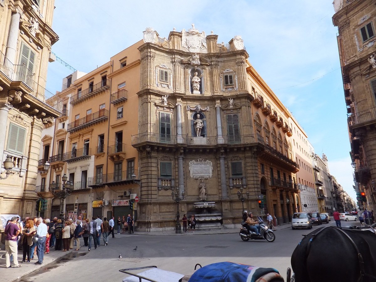 メインストリートが交わる中心地の十字路 「クアットロ・カンティ 」