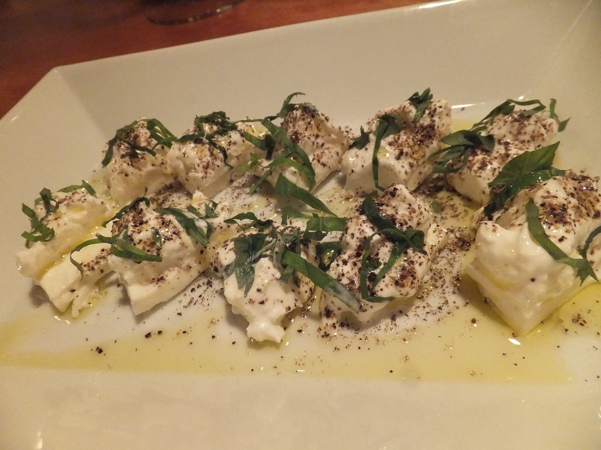 お客様にいただいたBurrata ブッラータ (モッツァレラの中に生クリームが入った、イタリアのチーズ)をシェフに切ってもらいました♪
