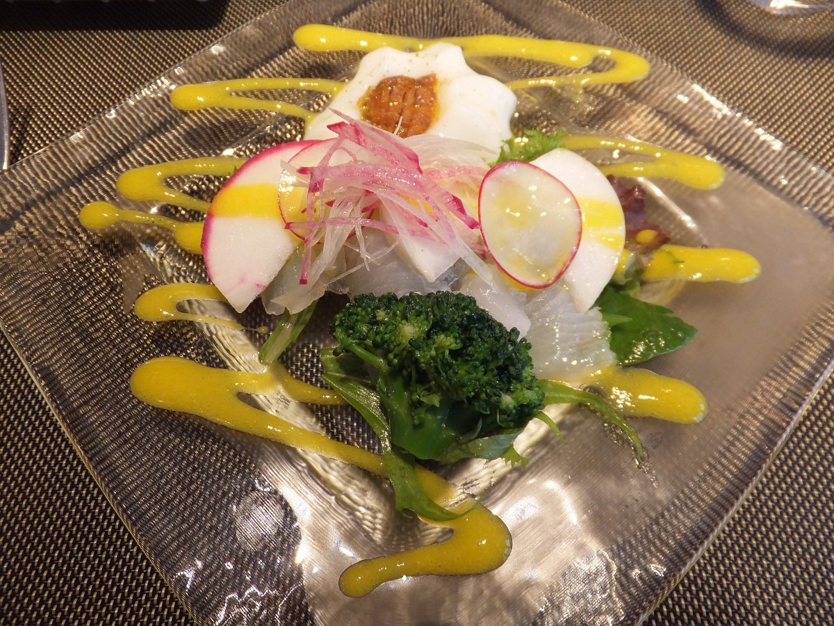 【鯛のカルパッチョ 蕪のムースとオレンジのソースで】