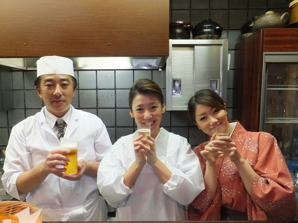 お酒が大好きな楽しい女将さんと、寡黙な板長と、スタッフのみさちゃんです♪