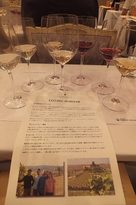 ラロッカを含むソアヴェ・クラシコ3種類と、アマローネを含む赤2本、ソアヴェ・クラシコに使われているガルガーネガ種100%の貴腐ワイン 6種類のテイスティングをさせて頂きました。
