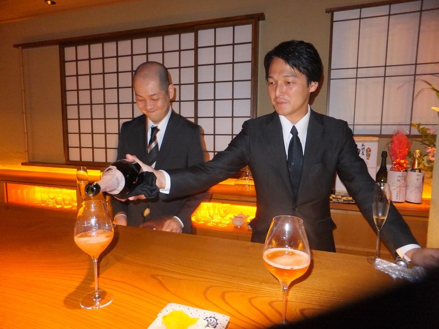 自家製ミモレットせんべいと、上品なお干菓子でシャンパンが進みます❤